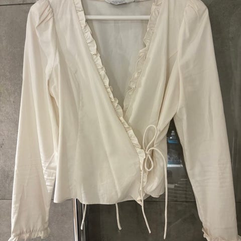 Pent brukt topp/bluse/skjorte fra &other stories selges da den ikke blir brukt nok. Er størrelse 38, men oppleves litt liten i størrelsen. Puffermer, knyting og glidelås i siden.
