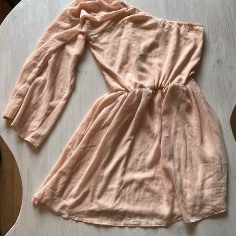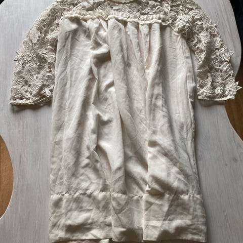 Nydelig kjole i beige blondestoff med sort innerstoff, dyp V-rygg og sløyfe nederst i utringningen på ryggen. Fra ASOS i str 36 🖤