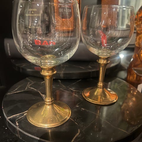 Glass med gullkant selges