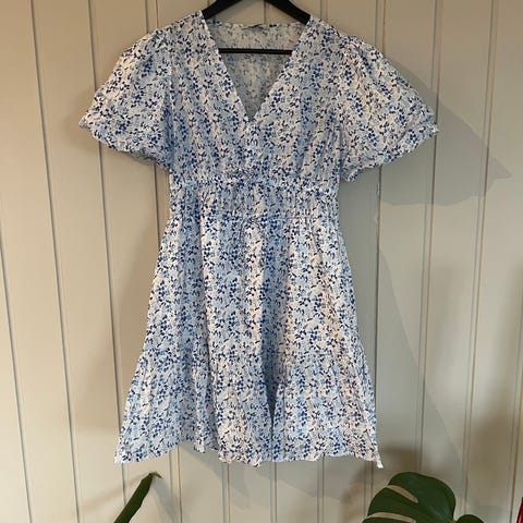 Deilig stoff, lett og sommerlig med eit nydelig mønster i blått.