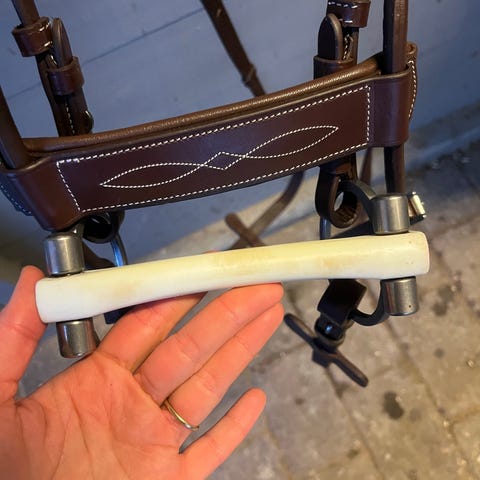 Brukt en gang. Str 125, et behagelig bitt med tungefrihet, bittringene kan byttes ut.