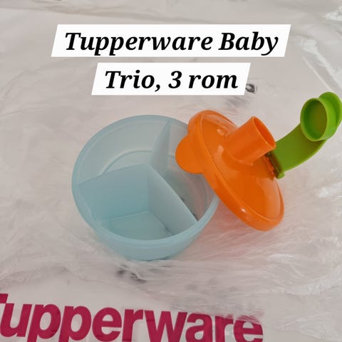 Tupperware Tuppercare Snack boks, 1,5dl. God til å ta med på tur til baby/ småbarn. Har 3 stk. Kr. 99,- pr stk. + porto. Kan sende med Postnord.