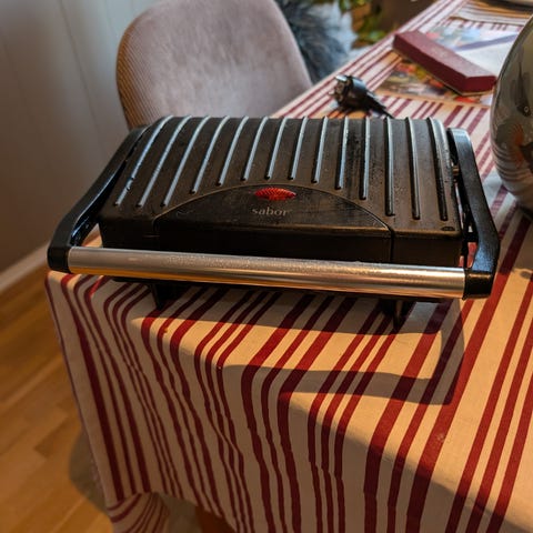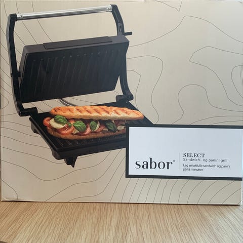Selger en uåpnet Sabor panini-presse som jeg fikk i gave og ikke kan returnere. Perfekt stand, og normal pris i butikk er 999 kr.