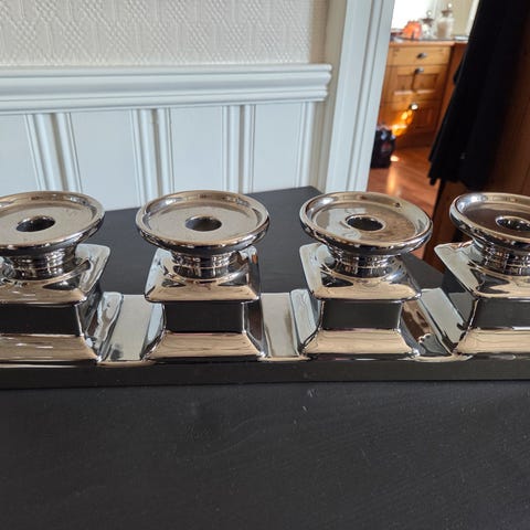Veldig fin lysestake for 4 kubbe lys eventuelt kronelys i sølv.