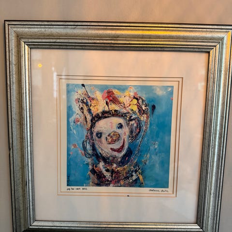 Marianne Aulie. Kunsttrykk "mormor er best i verden". Signert: Marianne Aulie.