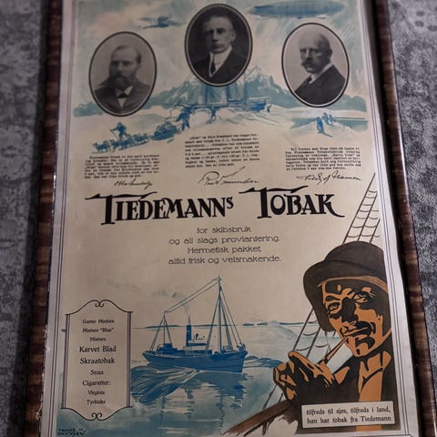 Papp-plakat og separat tobakkeske i fra 1950 tallet