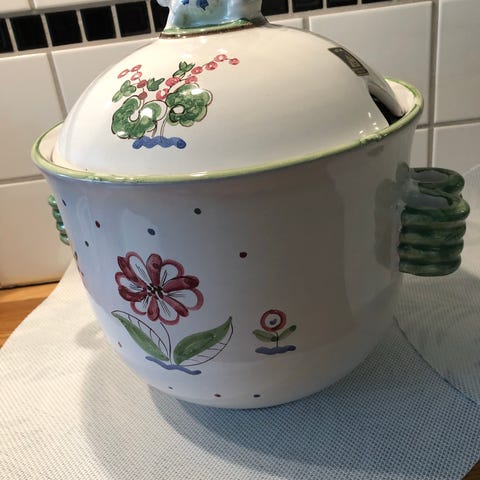 Eldre håndmalt bolle til servering av suppe, gryter og tilsvarende. Fra Figgjo.
