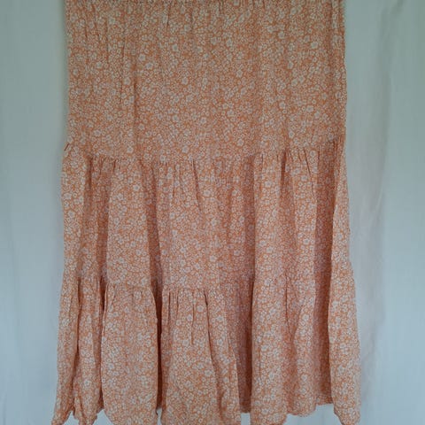 •Blomstrete skjørt, med blomster i forskjellige rosafarger .