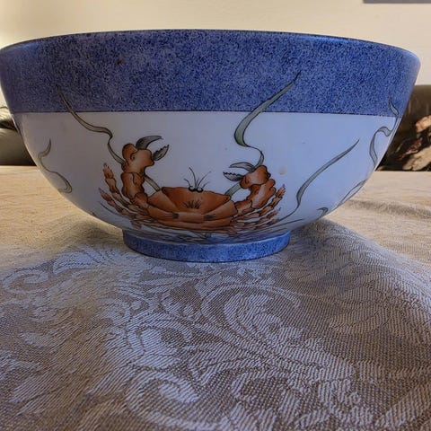 Pen skål og fat i meget god stand. Navnet på kunstneren er "G.Vårly" som står på begge. Kan sendes.