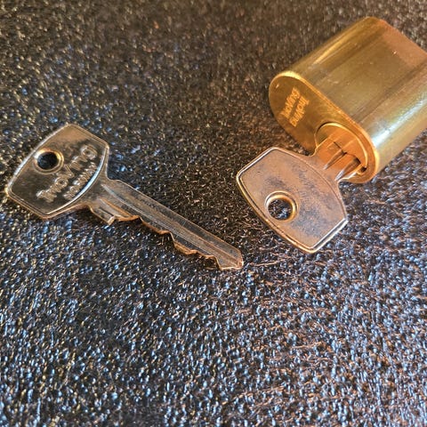 Det er en dobbeisylinder hovedport lås og har nr 1296C krom.Pris kr 1500,00 som er halv pris.