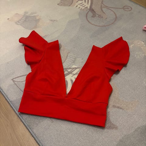 Tettsittende crop top med bånd under bysten. Parisian merke. 95% polyester og 5% elastan. Brukt lite, str. 42 (L). Fastpris. Kan også hentes.