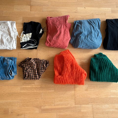 Selger en klespakke med totalt 11 plagg – perfekt for deg som bruker størrelse XS eller 36. Plaggene kommer fra kjente merker som Zara, Bik Bok og H&M, og pakken inneholder både bukser, bluser og kjoler.