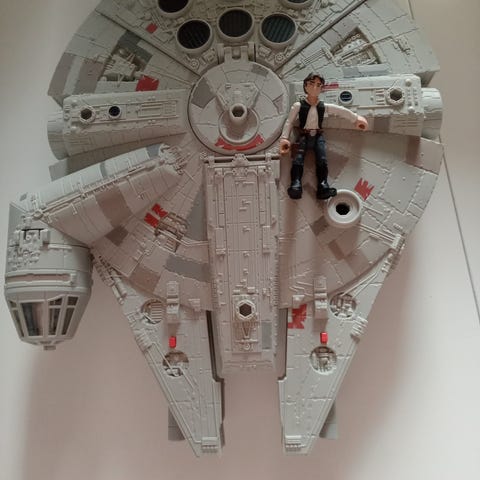 Original fjernstyrt Millenium Falcon. Nye batterier står i både romskip og fjernkontroll. Fungerer som ny, lite brukt.