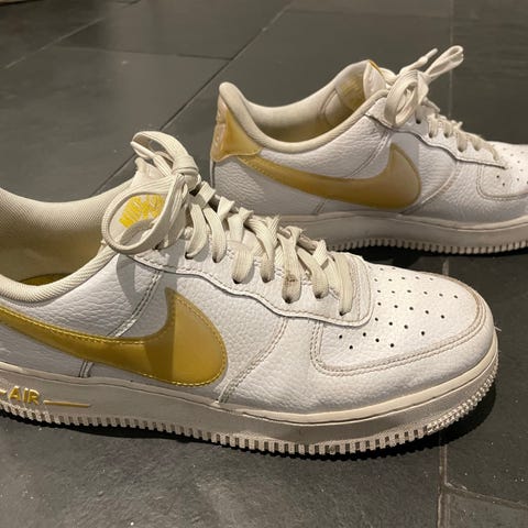 Selger et par hvite Nike Air Force 1 High i størrelse 41. De har vært brukt i omtrent ett år, men er fortsatt i god stand. Skoene er pene og hvite, med bare litt creasing (bøyemerker), som er helt normalt etter bruk. Ingen store skader eller slitasje, fortsatt veldig brukbare og ser fine ut.