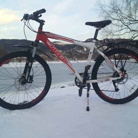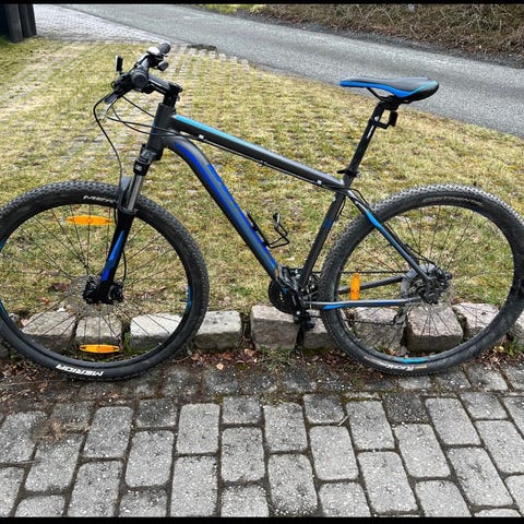 Lite brukt sykkel, kun til og fra skolen. Bremser og demper fungerer veldig bra. Ikke brukt de siste årene, derfor litt rust, og noen vanlige bruksmerker er det på den. Kjede mangler. Se bilder.
