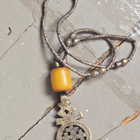 Sjeldent halskjede med originale italienske glassperler i matt muranoglass i håndsmidd millefiori teknikk i klare farger.