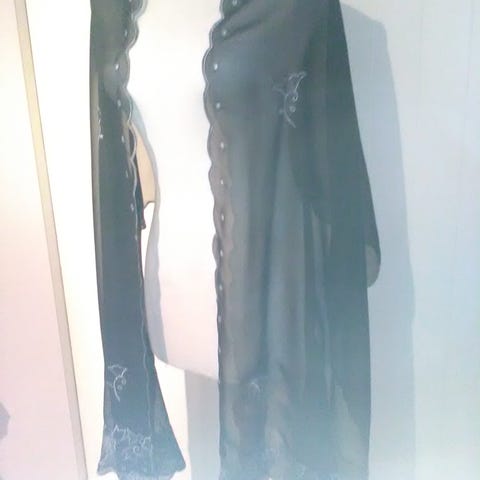 Prislappen er også en kvittering fra kvinnen som sydde sjalet, med navn.