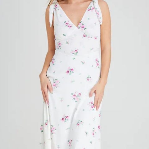 Satin Strap Dress fra byTimo er laget i en myk og skinnende viskosekvalitet. Kjolen har en maxilengde, tilpasset silhuett og tynne stropper over skuldrene.