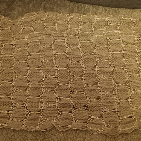 Gjennombrutt broderi sydd på "Singer" fotbrettmaskin. Praktfullt håndverk med merkelapp med signatur fra syerske.