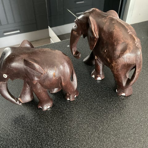 Stor elefant utskåret i tre .. Høyde 27 cm. Vekt 1,6 kilo