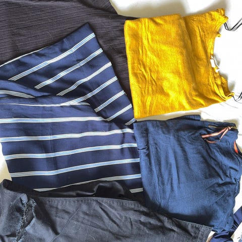 Har satt sammen litt forskjellig til sommergarderoben til en klespakke. Pakken inneholder en «Ola-shorts» fra Zara, en tur-shorts fra Trekmates, en blomstrete kjole fra Cubus, en lyseblå kjole fra H&M og en T-skjorte fra Only.
