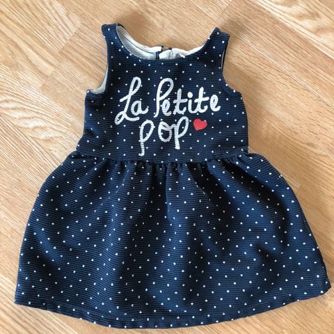 Selger en søt kjole. Blå med prikker.