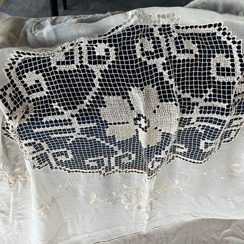 Størrelse ca. 135×180 cm. Har revnet på en side og må lappes. Se bilde 2. Har flere gamle tepper, se andre annonser.
