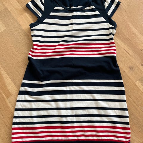 Stripete sommerkjole marine/ hvit brukt 2 ganger god kvalitet