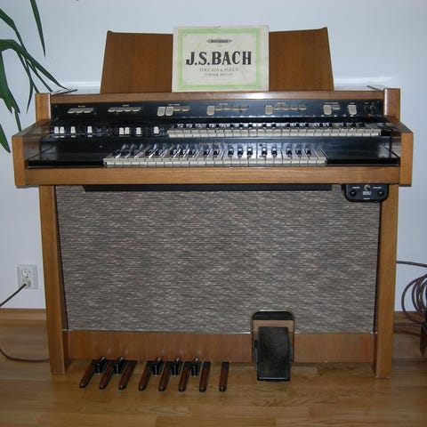 Vi selger et Hammond company orgel fra rundt 1975-1985. Orgelet har stått pent plassert i en leilighet og i en bod. Den ene siden av notestativet er løs, så denne trenger en fiks. Benken følger med.