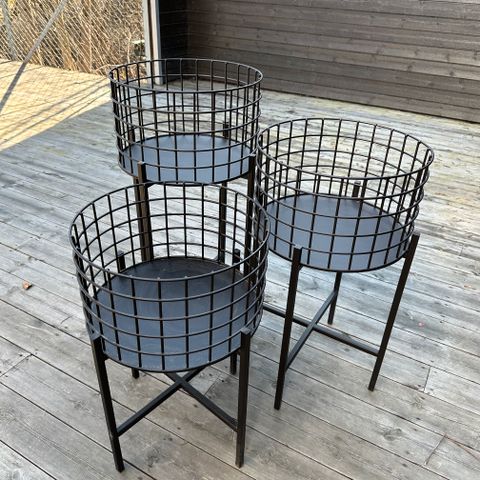 Sett av sidebord eller plante bord, metall.