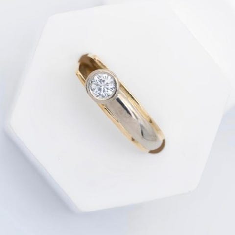 Som ny, brukt et par ganger, gullring med 10 diamanter i ulike størrelser selges til høystbydende. Har diamantsertifikat/ekthetssertifikat på ringen.