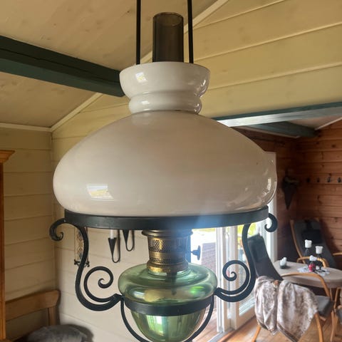 Lekker lampe som ser ut som parafinlampe , men med strøm