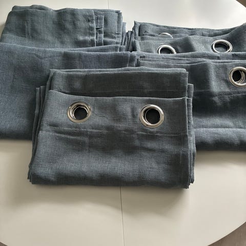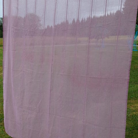 4 stk gardiner, farge hvit og lys lilla. Meget pent brukt. Gardinene har maljer som oppheng. Koster 70 kr/fag.