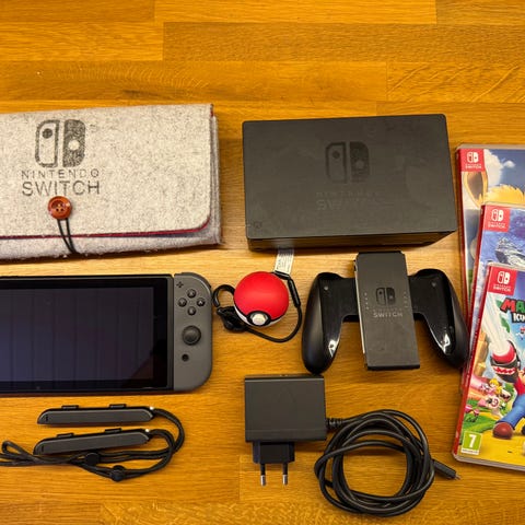Selger en Nintendo Switch i Neon Red/Blue, svært pent brukt og fungerer helt perfekt. Følger med to ekstra Joy-Con (totalt 4 Joy-Con!), praktisk bæreveske og skjermbeskytter (inkludert ekstra reservebeskytter).