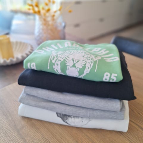 Tre er Størrelse M og en i L(en liten L så går som M)