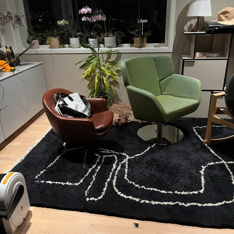 Dette ble kjøpt nytt i 1963 av Mormor. Har vært med henne siden. Bruksmerker er det med tanke på alder. Bordet fra samme år følger også med.