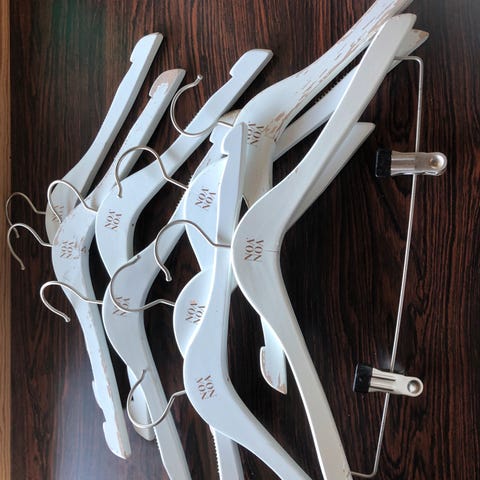 13 stj hvitmalte trekkeshengere. 12 av dem med stang.