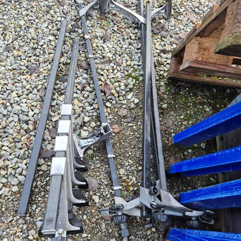 Kjøl- og siderulle for montering i vanlig tilhenger for å frakte jolle 10-12 fot. Pris 1200,-