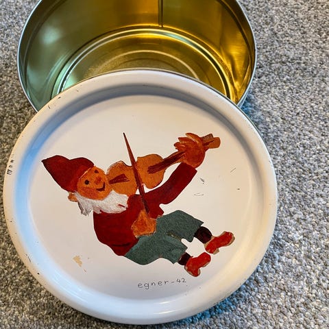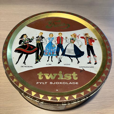Flott kakeboks med te reklame inni lokket. ABC tea