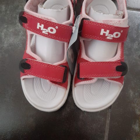 Pent brukt god barnesandal fra Kool i brunt skinn. Sandalen har åpen tå og åpen hælkappe. I tillegg har den to justerbare remmer over foten. På denne er det store metallspenner. Den har en formstøpt skinndekksåle slik at foten ligger godt og stabilt. Den har også en sklihemmende yttersåle. Modellen er normal i størrelsen.