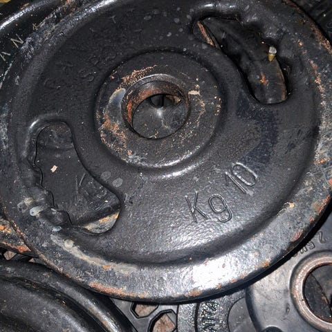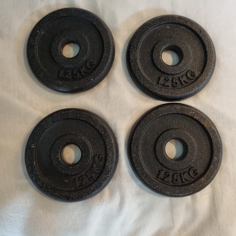 Er 45cm i diameter og passer til 50mm olympiske vektstenger. Disse er av plast, fylt med sand og er beregnet på å trene teknikk, ikke å løfte tungt. Må ikke forveksles med bumperplater eller stålskiver.