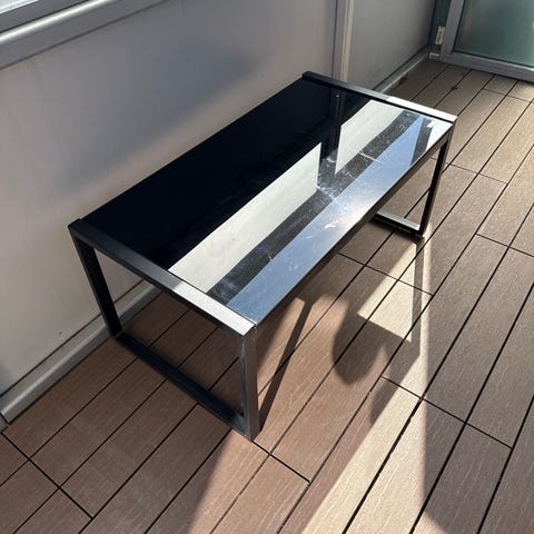 3 stk plater i herdet glass med 2 festestolper i rusfritt stål med fester som også kan monteres på vegg gis bort samlet. Passer bra til balkonger og terrasser.