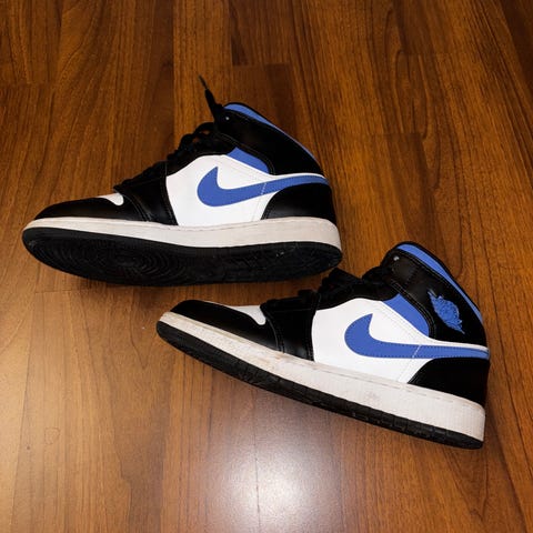 Selger disse Jordan 1 Mid White Black Racer blue str 42