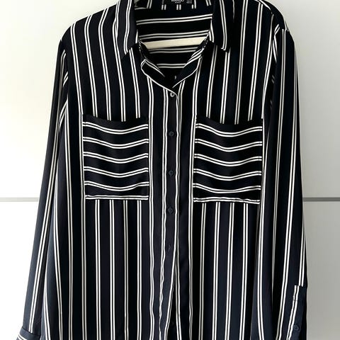 Florlett bluse fra Mango i str XL. Med dots, V-hals og gull knapper