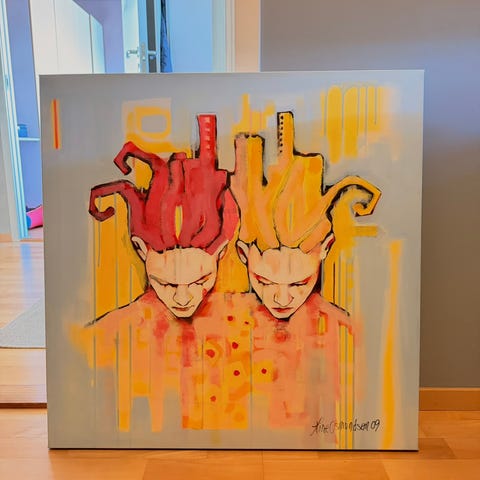 Spraymalt bilde som er delt på 2 lerret.