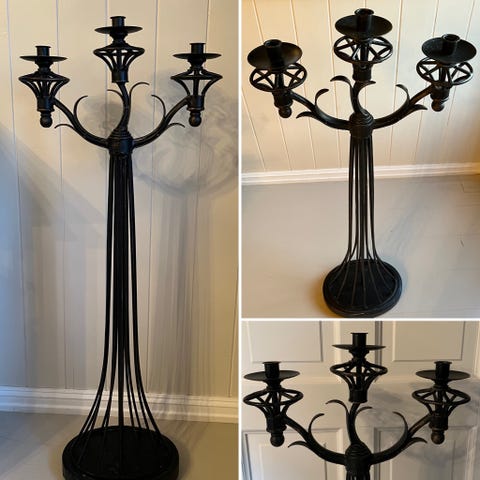 92cm høy, platen øverst er ca 18cm i diameter.