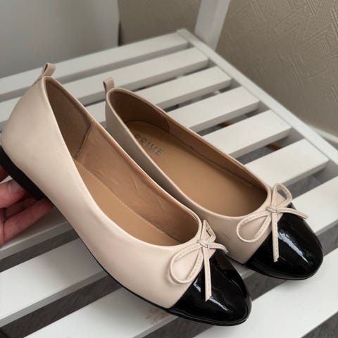 Komfortable, kjempefine ballerinasko fra Copenhagen shoes. Har stretch bak mot hælen så de former seg mer etter foten. Kun brukt én gang i et bryllup. Nypris 1499,-