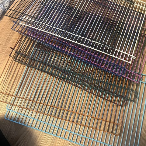 Hun krever et bur uten gitter på minst 100x50x50 cm, hjul på minst 30cm, multikammers hus (av stor type da hun er svær), og støvfritt bunnstrø på 20+ cm dybde. Mye av det hun har i buret kan kjøpes med for et tillegg i prisen.