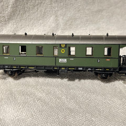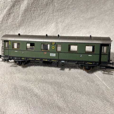Passasjervogn for andre klasse til modelljernbane.