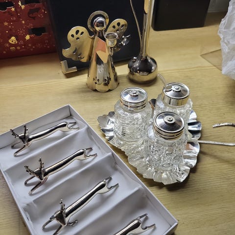 Den største er 26 cm høy, diameter oppe 17 cm. Den minste 20 cm, diameter 13 cm oppe.